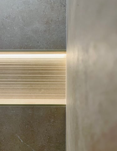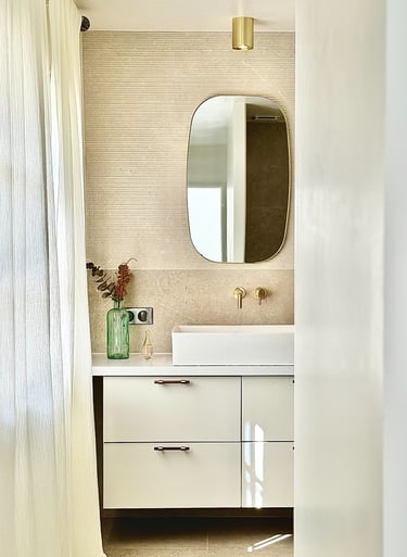 Le rez-de-chaussée accueille désormais une vaste suite parentale intégrant une salle de bains, un dressing et un espace buanderie, pensée comme un véritable lieu de vie autonome. À l’étage, les chambres ont été réorganisées pour offrir des espaces plus lisibles, lumineux et adaptés à un usage familial. L’ensemble du projet cherche un équilibre entre respect du caractère normand et réinterprétation contemporaine des volumes.