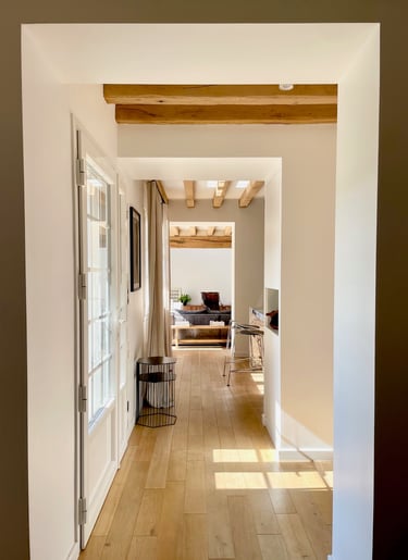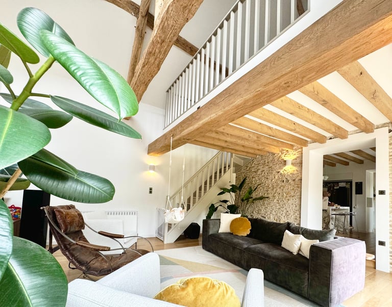 Cette maison normande de 180 m² a fait l’objet d’une rénovation complète, au cours de laquelle l’ensemble des espaces a été repensé. Aucune pièce n’a conservé son implantation d’origine, permettant une redistribution globale des volumes afin d’améliorer le confort, la fluidité des circulations et les usages, tout en préservant l’esprit authentique de la bâtisse.